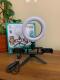 3 modes de luminosité (chaud, doux et froid).10 niveaux de luminosité pour chaque mode.Anneau LED réglable jusqu’à 180°.Support rotatif pour smartphone.Câble d’alimentation USB de plus de 180 cm de long.Dimensions du support complet : 40h x 29l cm.Télécommande pour prise de vue à distance.