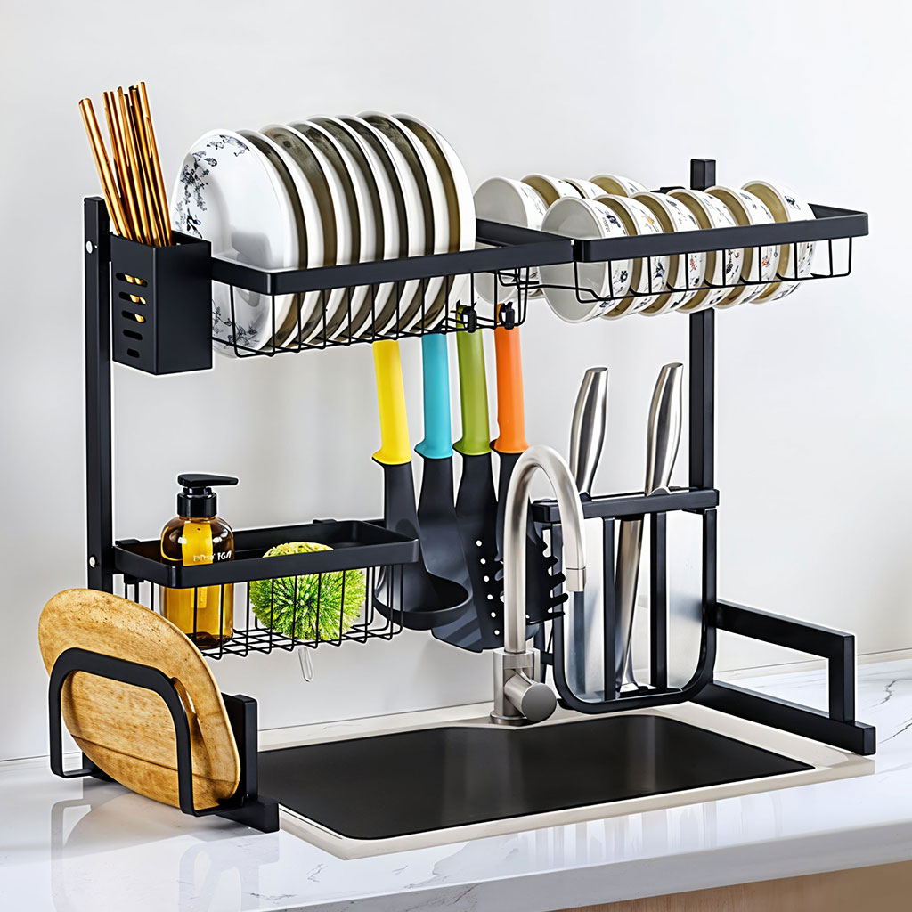 صُمم خصيصًا ليستغل المساحة فوق الحوض بذكاء، مما يوفر لك أكثر من 50٪ من مساحة المطبخ دون فوضى.